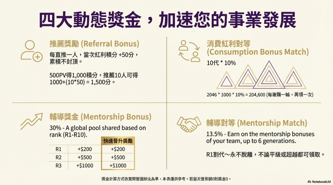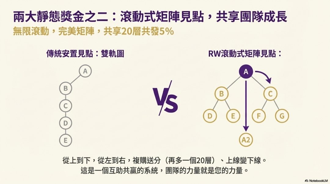 兩大靜態獎金之二:滾動式矩陣見點,共享團隊成長
