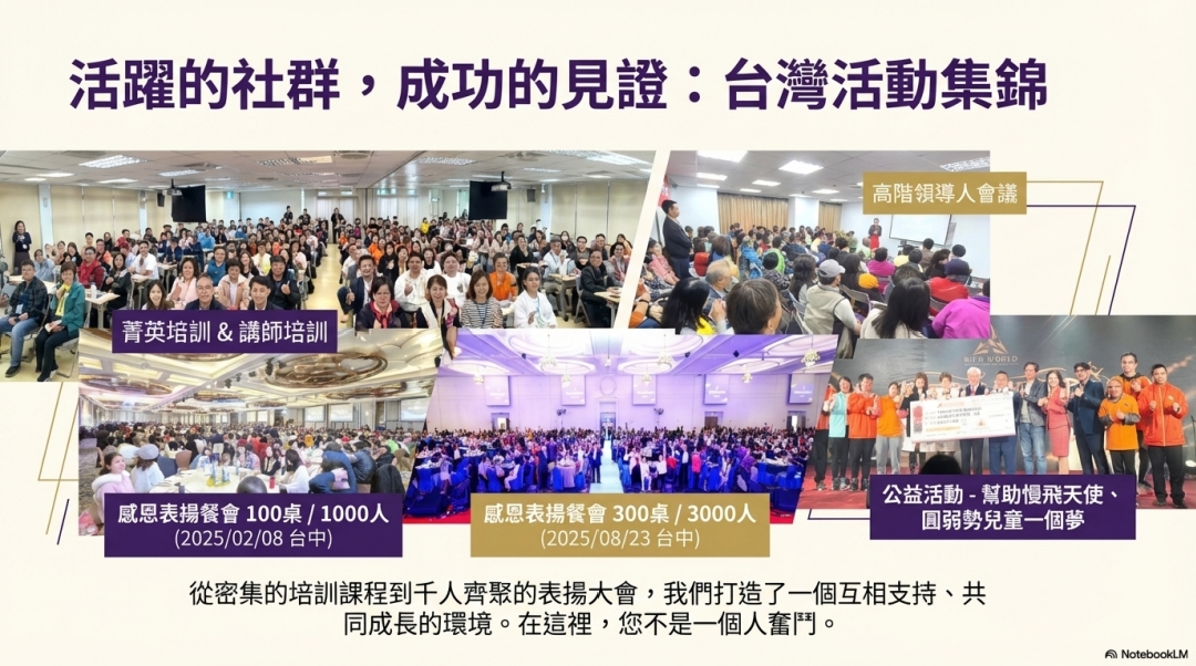 從密集的培訓課程到千人齊聚的表揚大會,我們打造了一個互相支持、共 同成長的環境。在這裡,您不是一個人奮鬥。